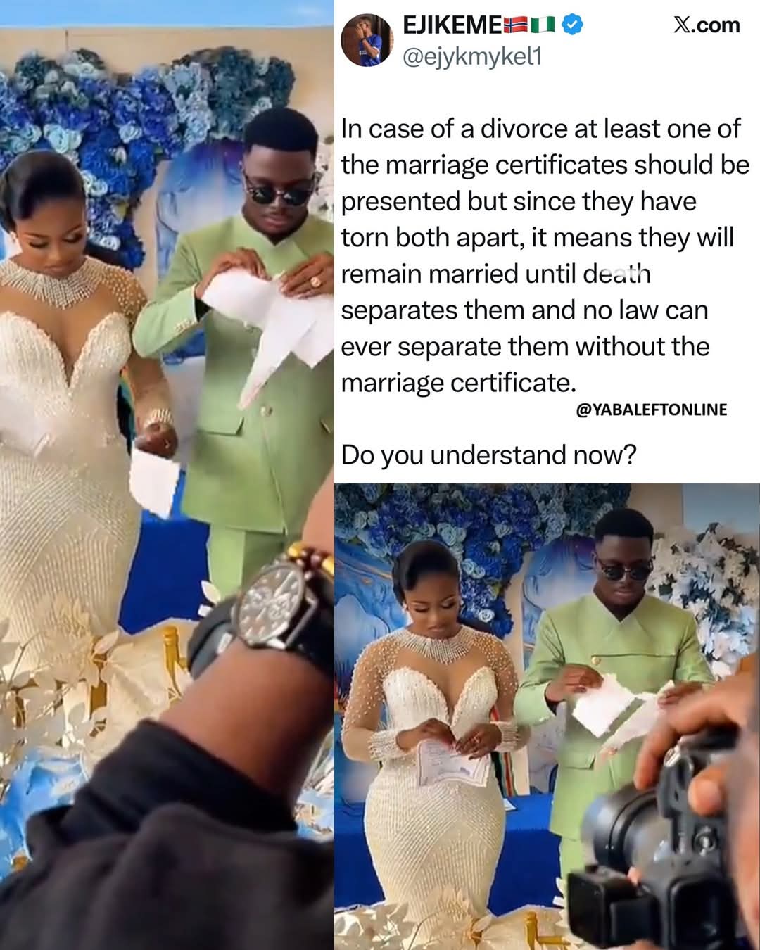 Man shares why a newlywed couple tore their marriage certificate