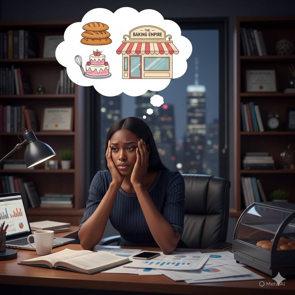 She chose big meetings over baking, suits over sketchbooks,Tables and Desk over pans or ovens.