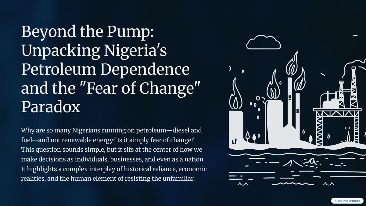 Diesel has been part of Nigerian life for decades. We grew up hearing the sound of generators, smelling fuel fumes, and planning our lives around power outages. Over time, this repetition created a belief: this is how things work. When something new like solar energy appears, it threatens that belief. Fear steps in, not because solar is bad, but because it is different.