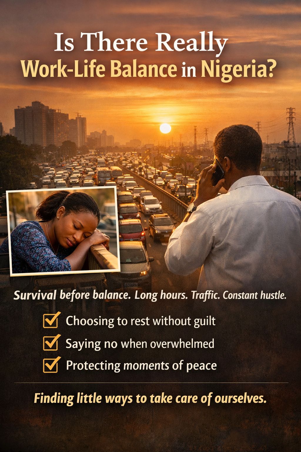 Work-life balance in Nigeria may not look like perfectly split hours or strict boundaries. Sometimes, it simply means: