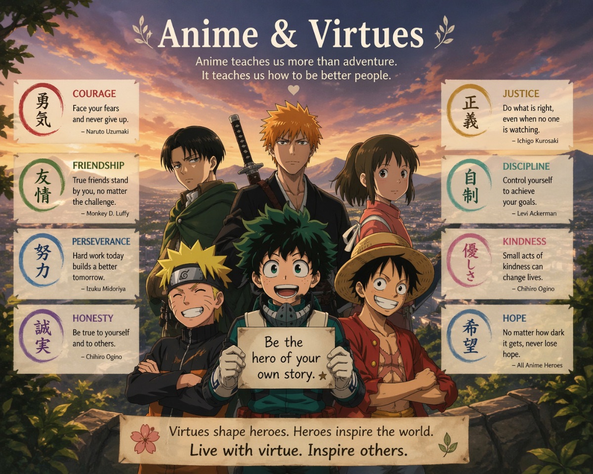 Okay I’m pretty sure all the concepts in this story are well understood. Animes are Japanese animations( not cartoons) and virtues are positive character traits, habits, and dispositions that reflect high moral standards, excellence, and righteousness. Now, is there a connection between anime and virtuousness? Let’s see