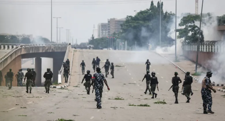Nigerian security forces clashed with #EndBadGovernance protesters in the Gwagwalada area of the Federal Capital Territory (FCT), Abuja, on August 1, 2024. The confrontation occurred as demonstrators barricaded the main Lokoja – Abuja Expressway, halting vehicular movement in the area.