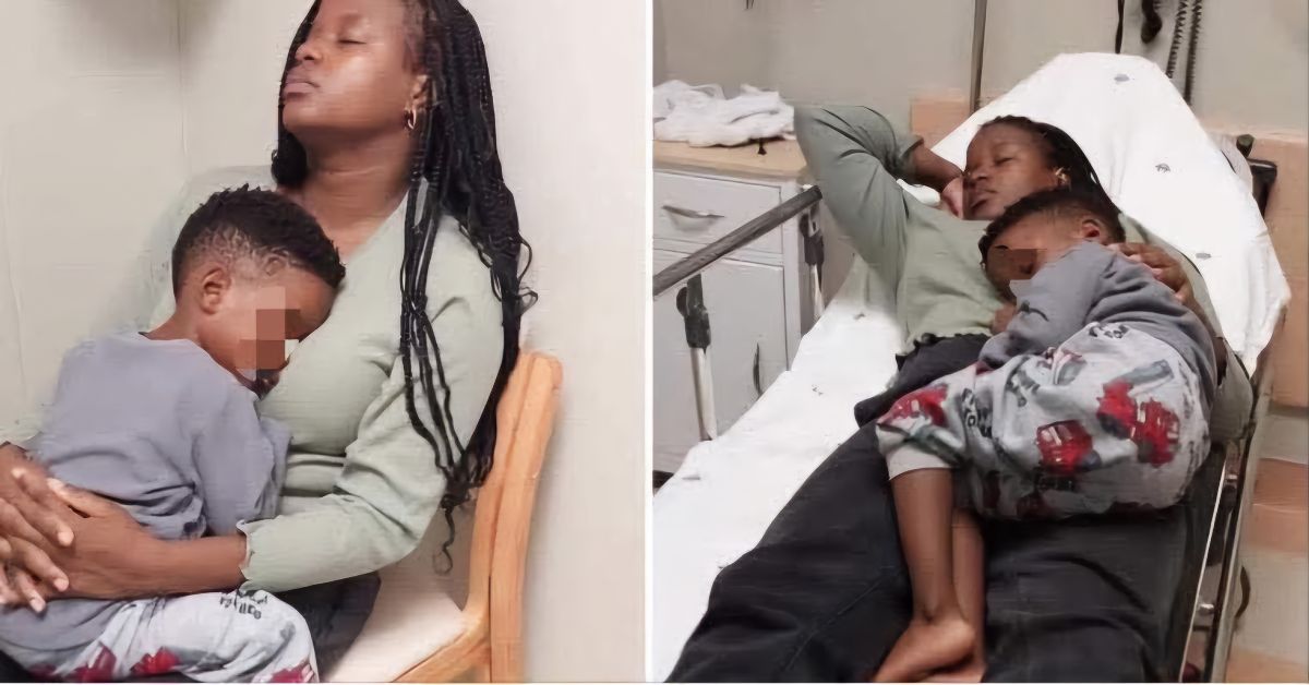 “This was taken today at 4:00 a.m. This boy was struggling to sleep and said his heart was hurting and that he wanted to see a doctor. I usually try to avoid the hospital thing because, well, I know my son. But okay, I ended up going there, even though I wanted to turn back because he had already fallen asleep while we were on our way. Still, I ended up at casualty.