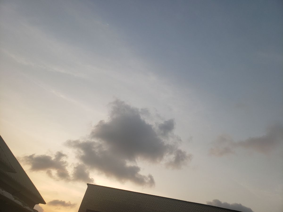 Wednesday 24th December exactly 6:23 this picture was taken. It showed the slow movement of the sun going down and the moon getting ready for its time. It showed the earthly cycle of everyday life when the clouds began to cluster and the whole sky looked like a painting itself, a painting by a majestic painter indeed [God] . The clouds have always looked like soap bubbles or foams to me,the foams passing through the sky like they were going for a journey of their own. It's always funny to me how the clouds are shaped cuz if you look harder and imagine,you can see anything you want in the clouds,the shape changes and the sky just looks like a playground on its own with different imaginations flying in.