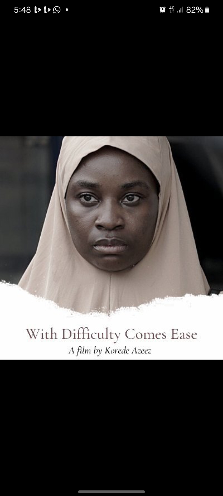 With Difficulty Comes Ease. The movie is by Korede Azeez and produced by Sheriff Akinola Bakare, Joshua Enakarhire, Fulfilment Nwaturuocha, BB Sasore, and Derin Adeyokunnu under Nemsia Studios, and it’s on Amazon Prime Video. The movie is mainly in English and Hausa, which is actually really important to the story because it shows how Zainab struggles not just with grief and religion, but with communication and cultural barriers too.