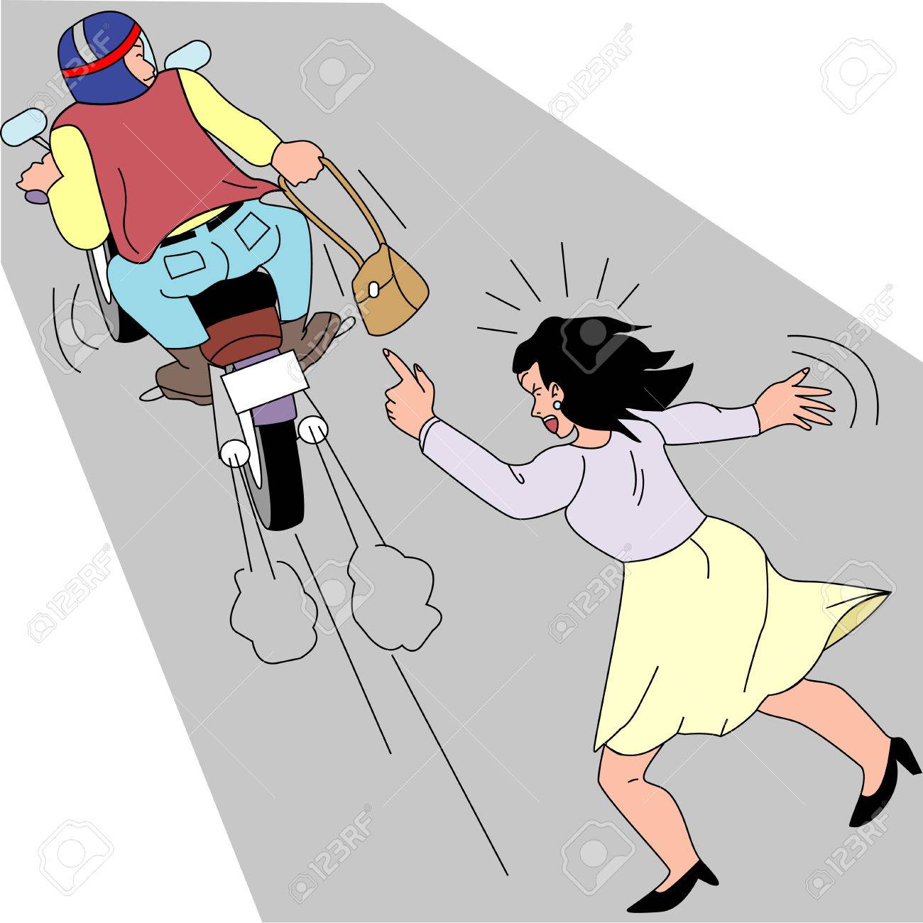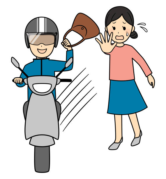 The peace is shattered by the high-pitched whine of a motorcycle engine. A bike man (Okada) swerves out of the gridlock, weaving dangerously close to the curb. In a flash of movement, the rider’s arm extends and hooks the strap of the lady's red purse. The force of the snatch jerks her shoulder back as the bike accelerates away.