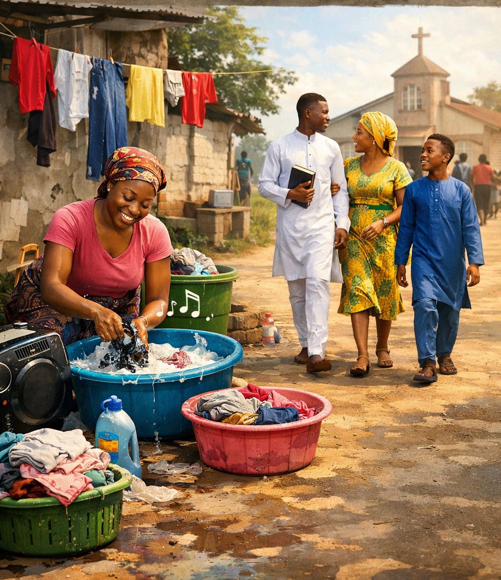 No be only to dey blast worship songs while you dey wash clothes every Sunday 🤣🤣