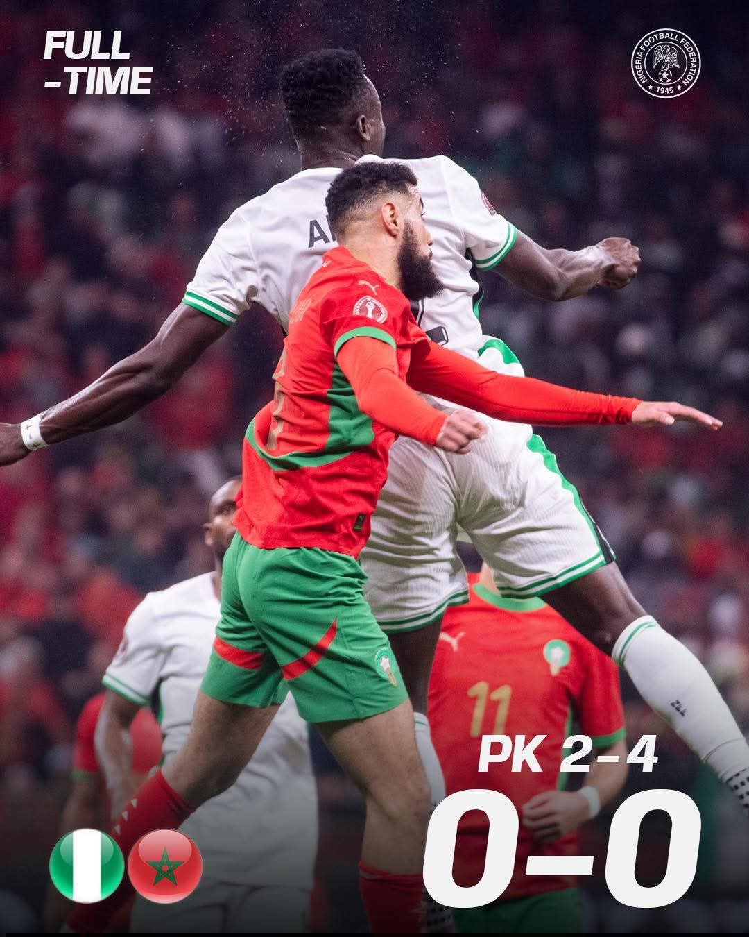 The loss ended Nigeria’s hopes of reaching the final, while Morocco booked their spot to face Senegal on Sunday.
