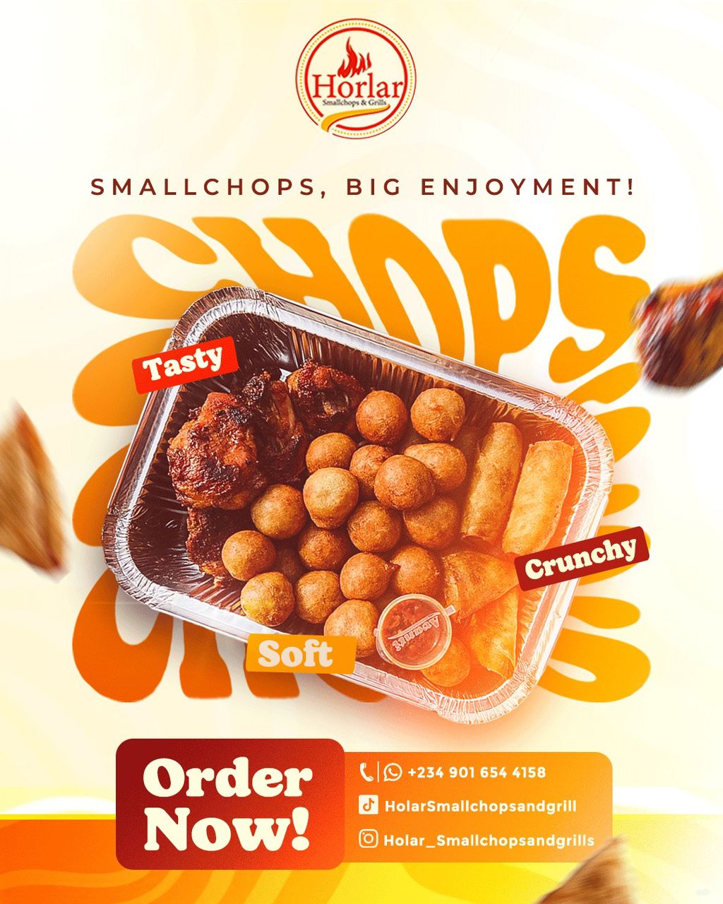 HORLAR SMALL-CHOPS & GRILLS delivers at your doorstep anywhere, anytime, anyday.