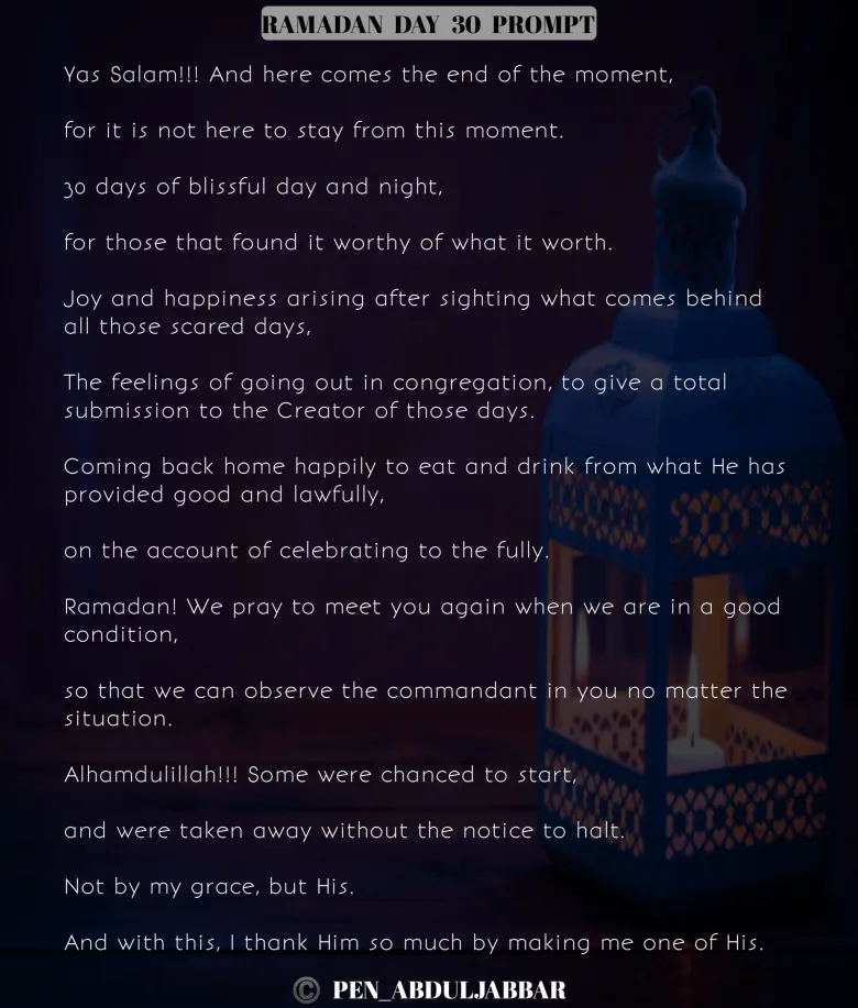 What surprises me is that, I didn't plan for it. All of a sudden, the lines just started flowing on my head. In less than 5 minutes, I was able to write this down😌. I have been into writing for over seven years now, but the journey of poetry began in the concluded Ramadan.