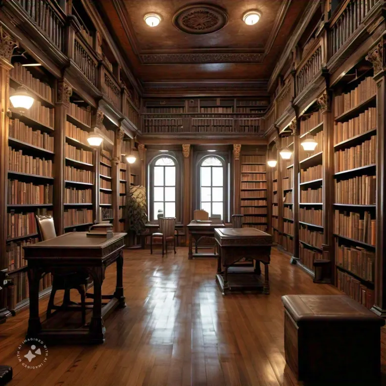 At the bottom, a warm glow enveloped her, and she stepped into a vast, labyrinthine library. Shelves upon shelves of ancient tomes and leather-bound volumes stretched far into the shadows. A figure emerged from the silence – the Librarian.