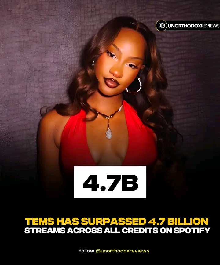 Tems has now surpassed 4.7 BILLION streams across all credits on Spotify👏