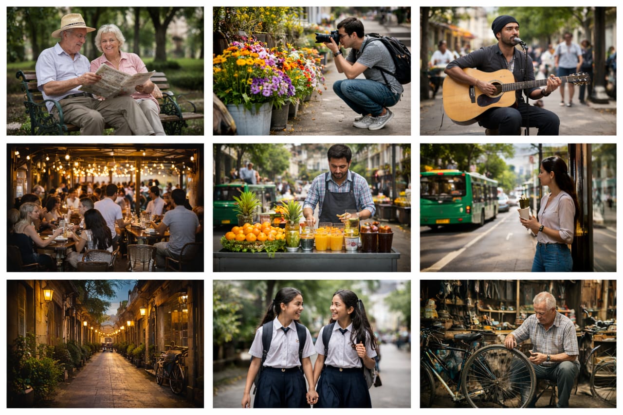 Street Photography: Telling Everyday Stories Through the Lens Street photography is the art of capturing real life as it unfolds—unscripted, raw, and deeply human. The images above reflect the true essence of this genre: everyday moments.
